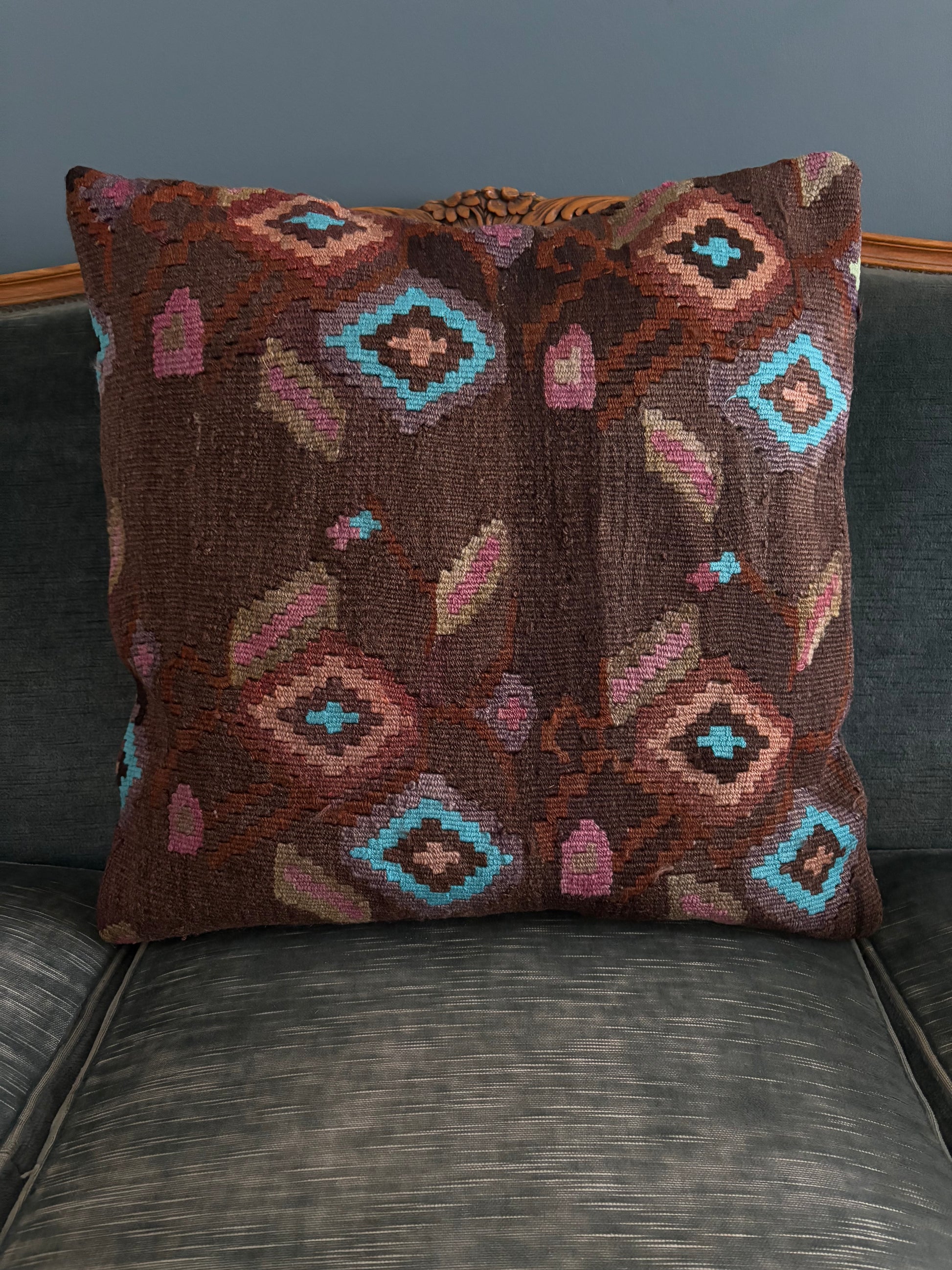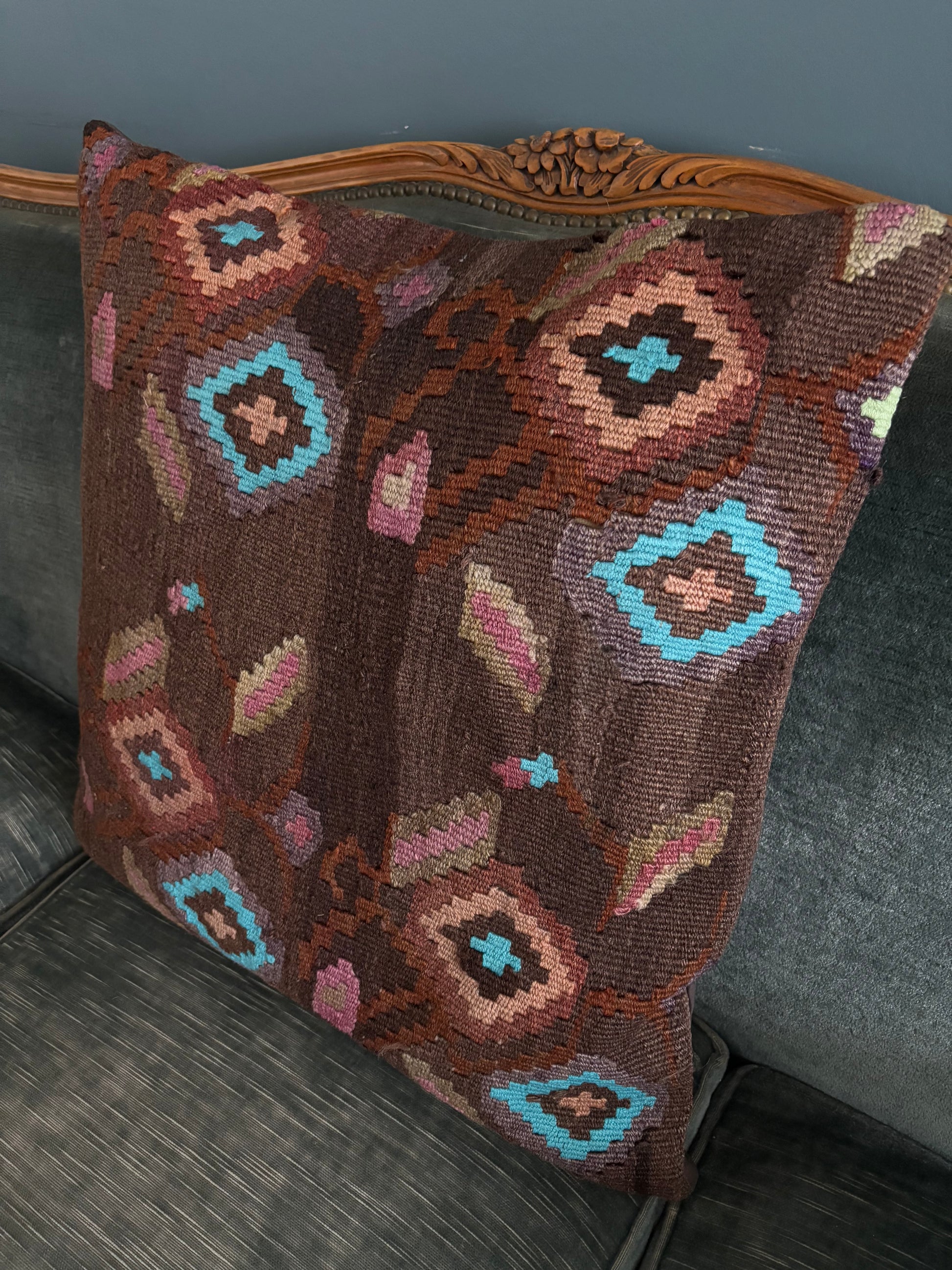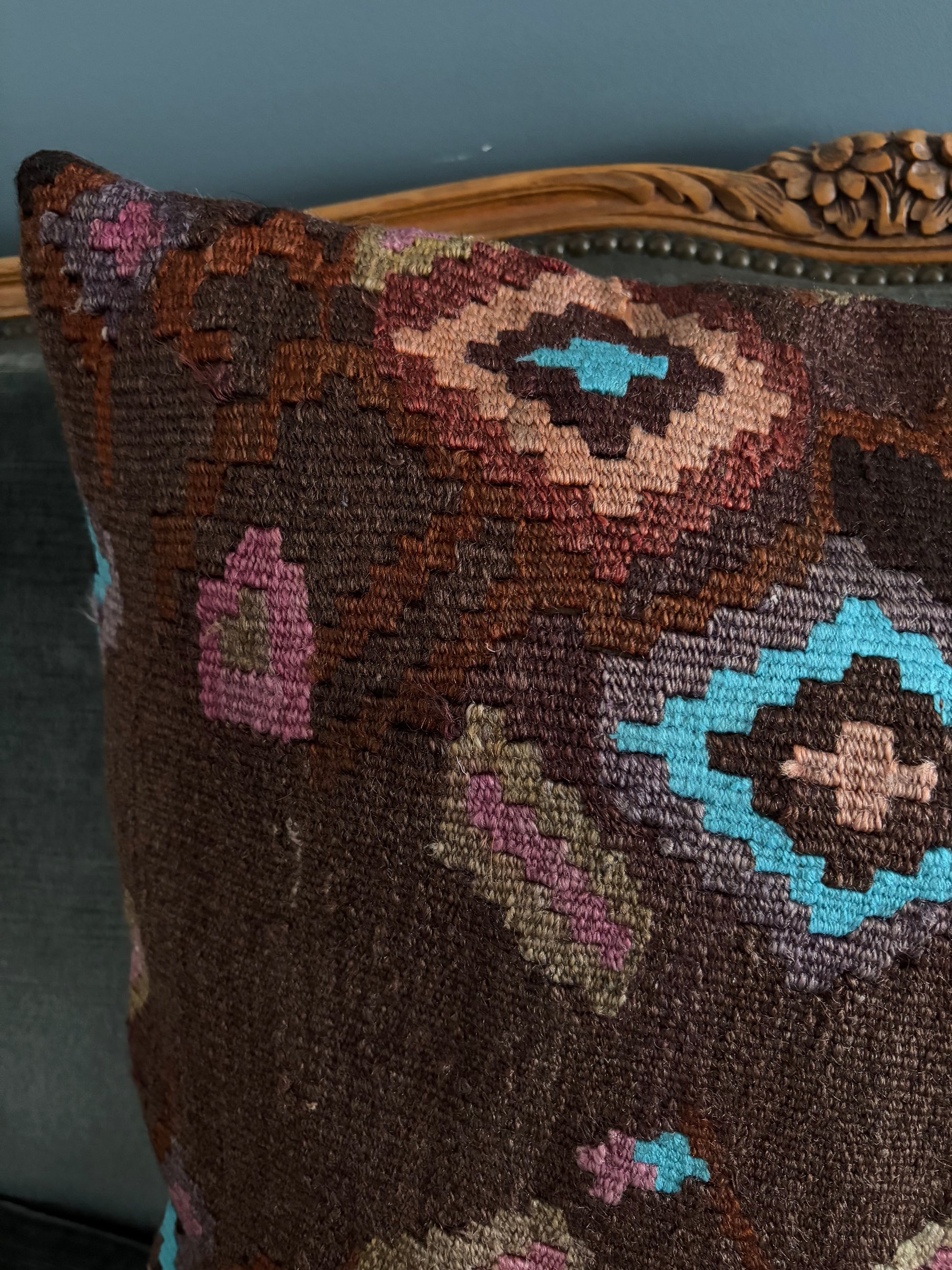 Upcycled, vintage Turkish cushion cover. 100% wool with a zippered, cotton backing.