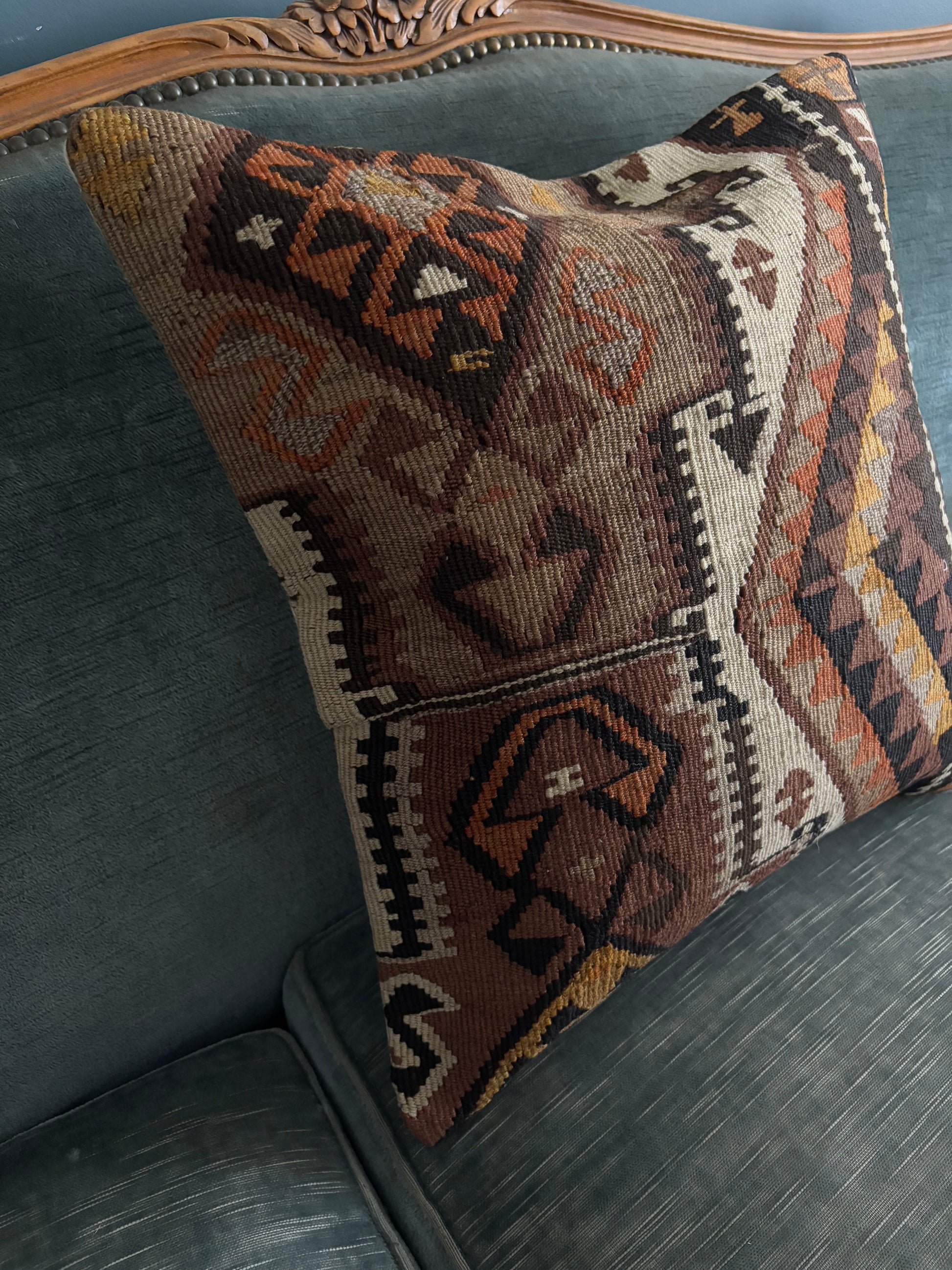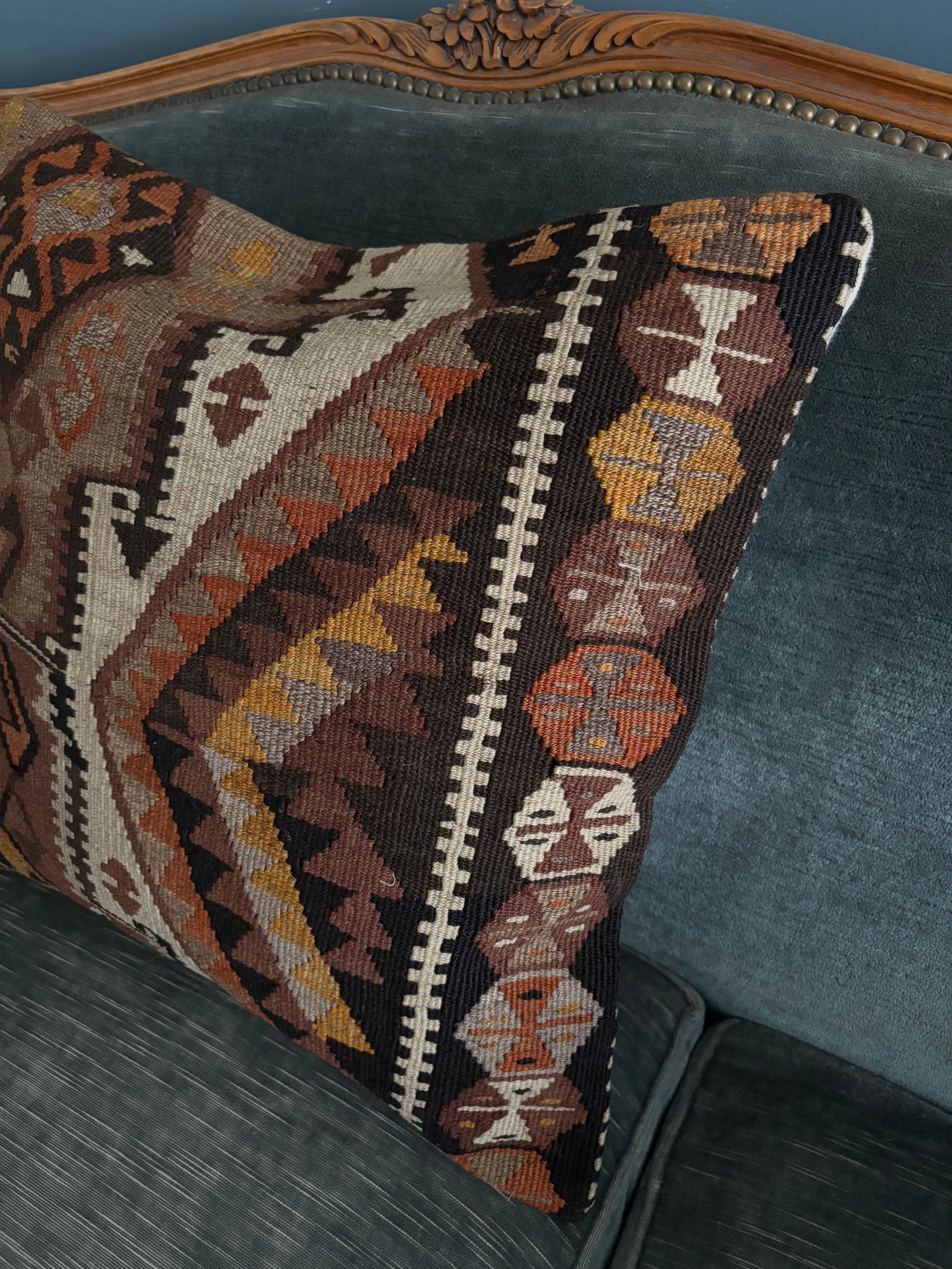 Upcycled, vintage Turkish cushion cover. 100% wool with a zippered, cotton backing.
